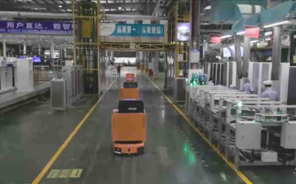 为车载冰箱物流配送打造的智能解决方案,,包含产中物流通过潜伏举升AMR搬运至线边,,,产后成品物流智能仓储,,,流程包含产中物流智能齐套入库,,线边安灯叫料AMR智能配送至线边,,,成品入库、、、、出库,,,,通过无人堆高车机器人,,,,智能仓储管理替代人工作业管理,,,,实现更高存储、、更高效率、、更具柔性化的解决方案。。。